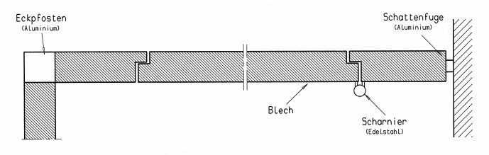 Der Wandanschluß erfolgt durch ein Aluminium-Profil (pulverlackbeschichtet) als Schattenfuge.
