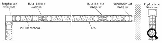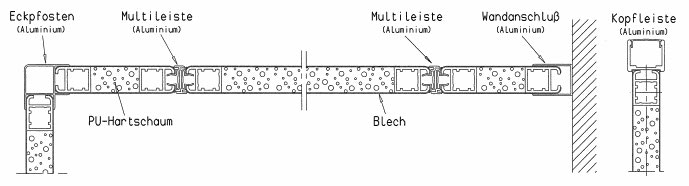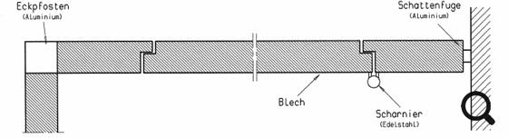 Der Wandanschluß erfolgt durch ein Aluminium-U-Profil (pulverlackbeschichtet).